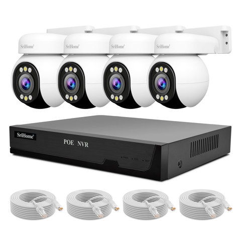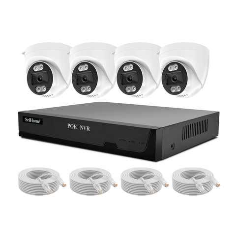 كاميرا أمن خارجية NVS005 + 4 * POE030B 5MP PoE NVR srihoome كاميرا رؤية ليلية كاملة CCTV كاميرا واي فاي في اتجاهين الصوت